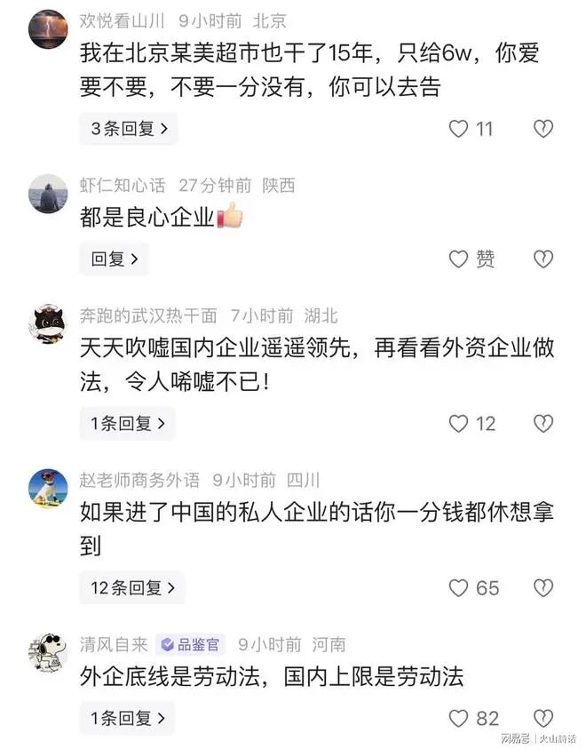 有网友感慨,外企底线是劳动法,国内上限是劳动法。