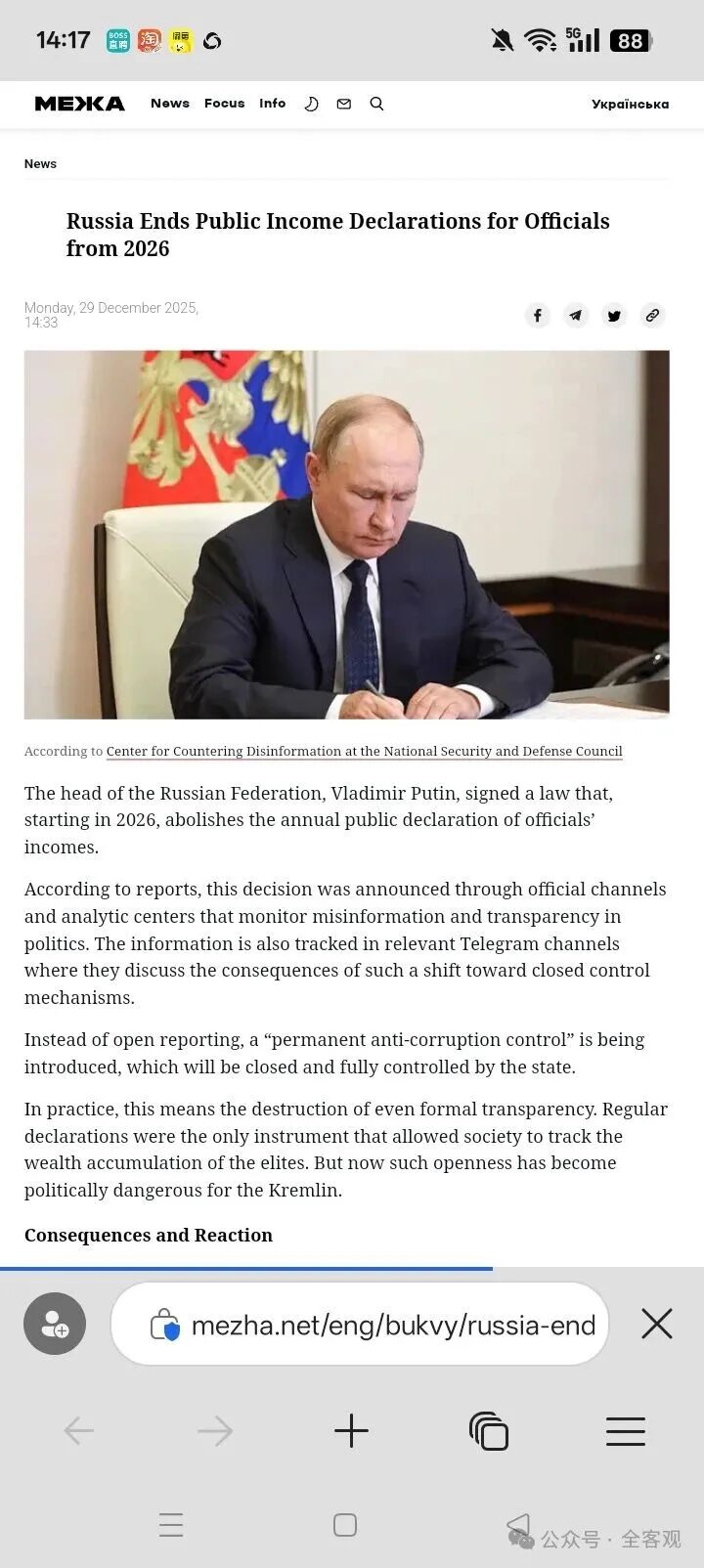 多家外媒2025年12月29日报道,俄罗斯总统普京签署了法令,全面取消了官员财产申报制度。