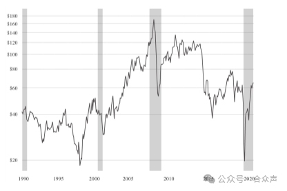 1990—2020年国际油价变化图