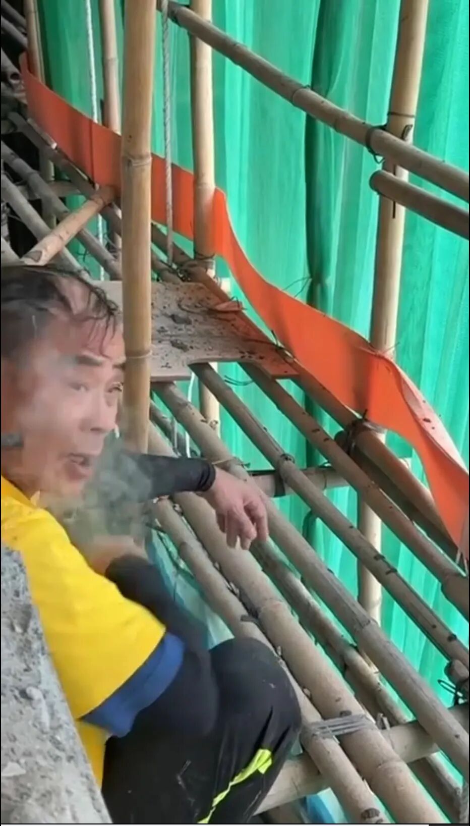 火灾发生后不久,便有网民在Threads等社交网站平台上发布视频和照片,指在宏福苑棚架上,曾有多名工人偷偷抽烟。