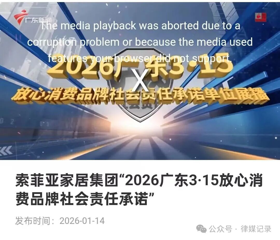 连续一年多的时间被频繁投诉、多次被媒体曝光的索菲亚被授予“广东315放心消费品牌”,用“315”符号为企业商业背书,最后又在广东新闻频道播出,显示同样带有315放心消费品牌。