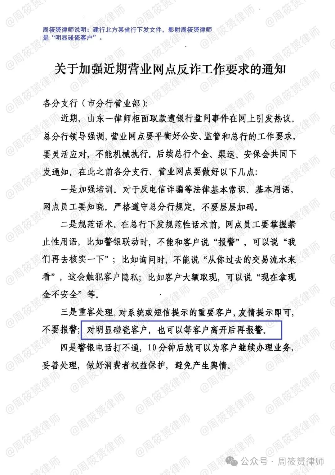 现在,蓝色行不仅没有落实央行的新规,还继续发出各种内部通知,要求加强反诈,压榨基层员工。当然,据我所知,不仅是蓝色行,还有其他银行,也在继续对抗央行的要求。