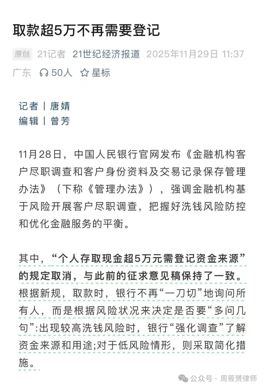 从2025年11月5日,我发布亲身经历“周筱赟律师建行取款被盘问并被报警”,直到11月28日央行发布新规,历经23天。期间,央视、新华社、人民日报这媒体三巨头表态支持我,真是不容易啊!我终于胜利了!