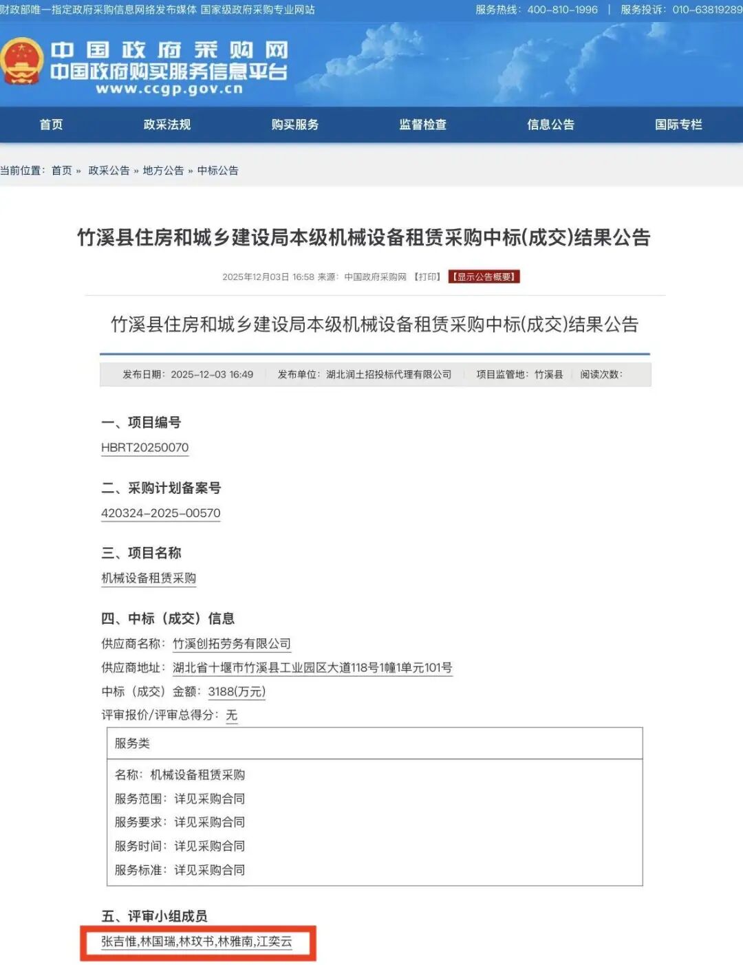 事情是这样的。湖北某县住房和城乡建设局,最近搞了一个机械设备租赁的采购项目,花了三千多万。