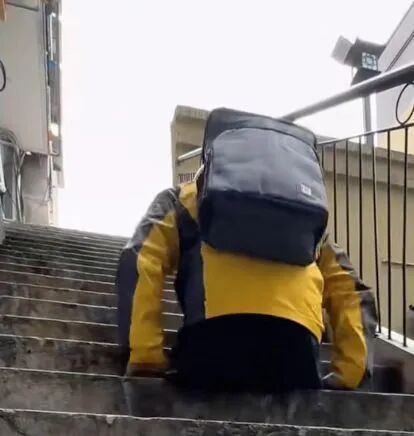 而且权威媒体们还拍出了这位外卖员送外卖的过程: