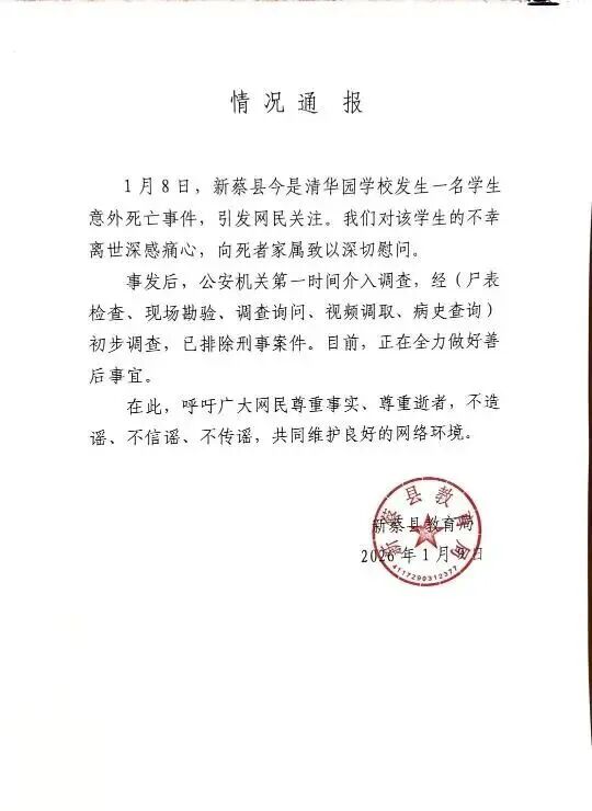 河南新蔡县学生校内死亡事件追问