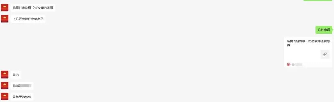 很多热点事件,也是因为我的带头关注,后面取得了突破性的进展。到这里,我想起了甘肃临夏12岁女孩被3人性侵的事,这件事在网上曾引起很大舆论,女孩的家属看到文章后联系我,我说后面如果需要我帮忙尽管说。