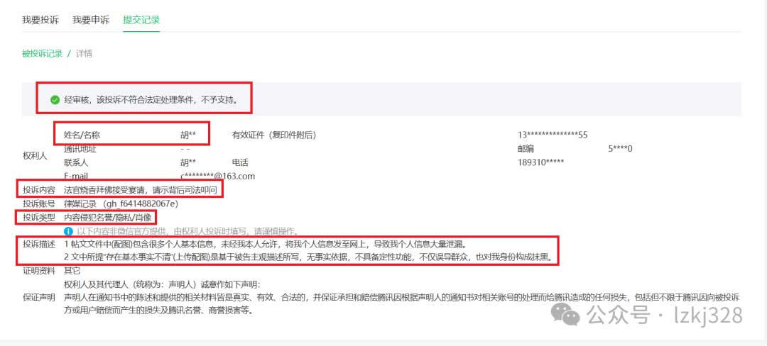 平台方没有惯着他们,给出的回答是:“经审核,该投诉不符合法定处理条件,不予支持。”