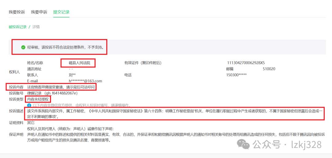 平台方驳回投诉的决定,或许可以被视为一种来自外部的纠偏:当法院试图用“工作秘密”捂住盖子,当法官试图用“侵犯隐私”阻断监督,平台用“不符合法定处理条件”的审核结论,给了公众一个基本的判断。有些事情,不是想捂就能捂住的。